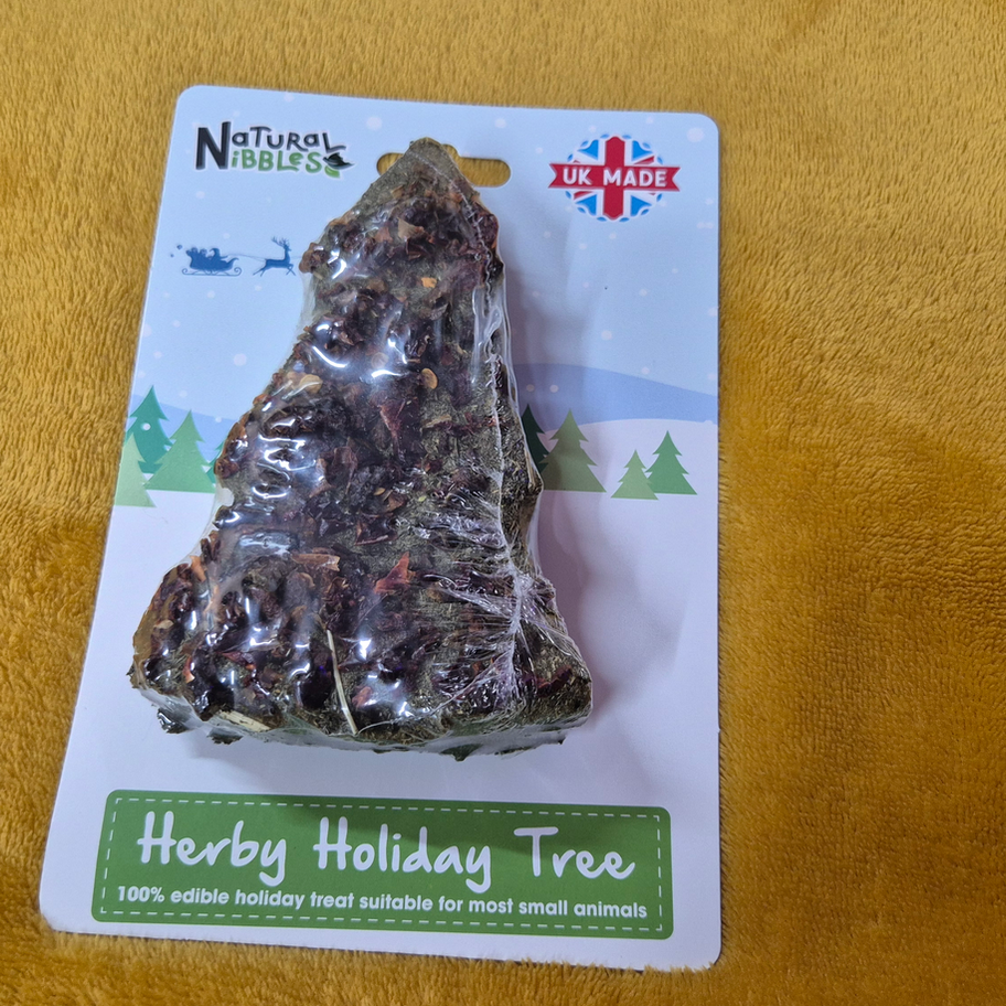 Decorated with 'jingle bell' peppers, this festive Herby Holiday Tree is the perfect, tastiest stocking filler for your bunny this Christmas. Made from all natural forage, this crunchy treat is a delicious, festive present for your bunnies.