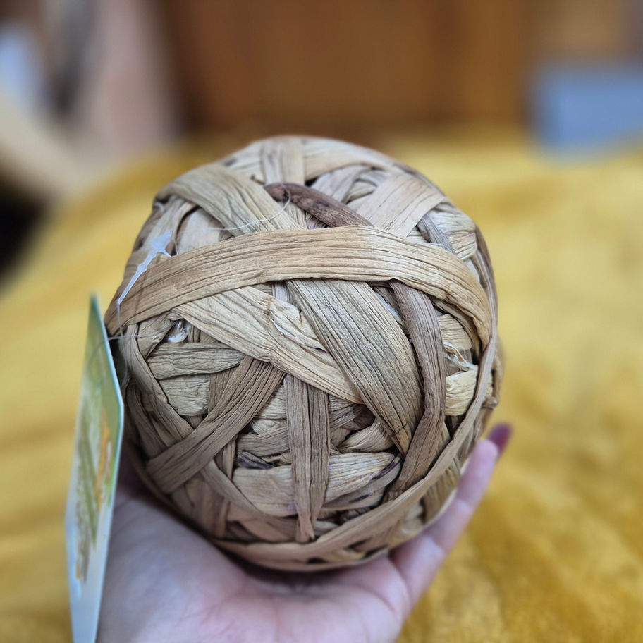 This natural grass (water hyacinth) ball from Natural Nibbles comes in three sizes. They are fantastic enrichment toys that your bunny, or small pet, will love to chew and chase. Natural grass balls are great for rabbits and other small pets to nibble and roll around their enclosure.